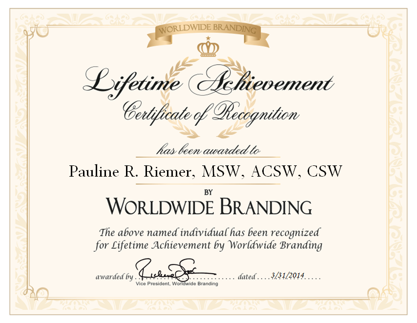 • Recipient, National Lifetime Achievement Award, National Association of Social Workers, Syracuse (1989)