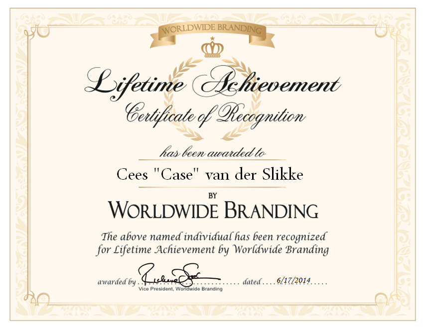 - Inductee, Lifetime Membership, Worldwide Branding (2014)