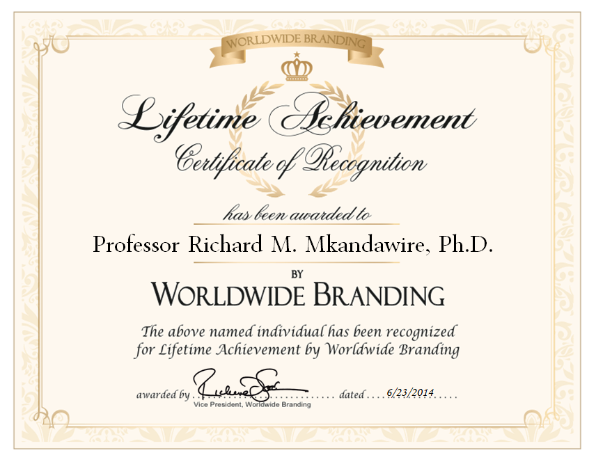 - Honorary Doctorate in Agriculture Science, University of KwaZulu-Natal