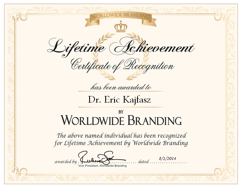 - Inductee, Lifetime Membership, Worldwide Branding (2013)