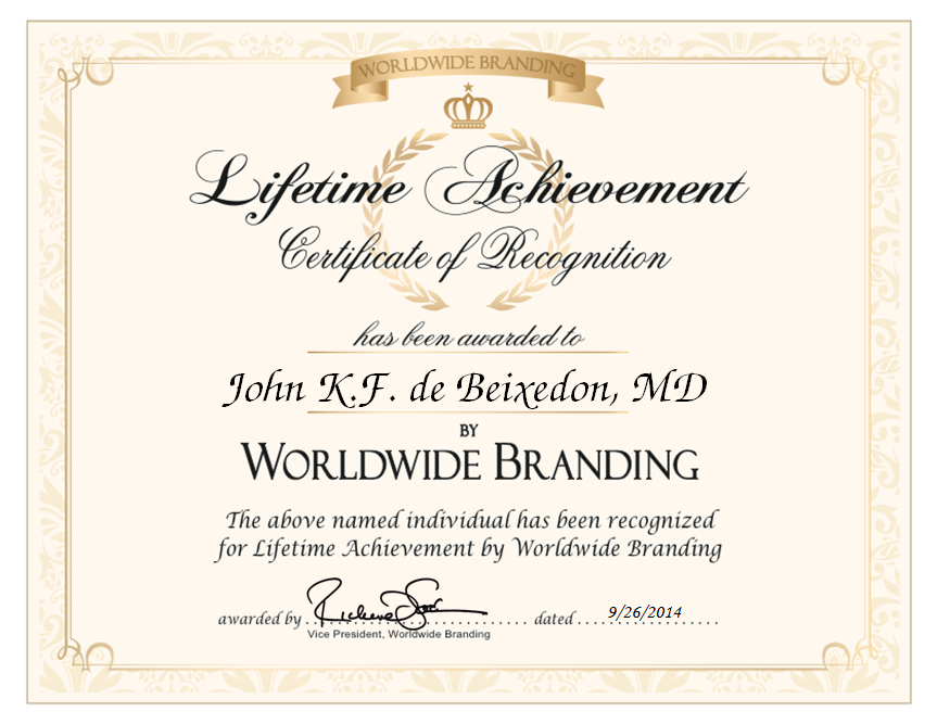 - Inductee, Lifetime Membership, Worldwide Branding (2014)