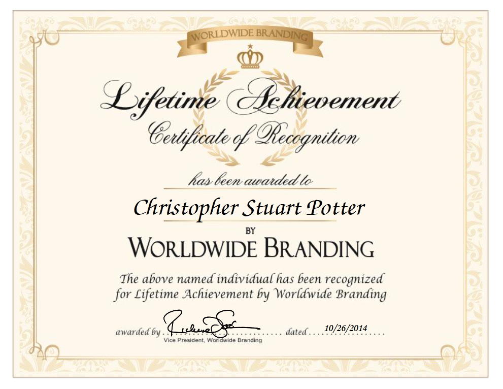 - Inductee, Lifetime Membership, Worldwide Branding (2012)