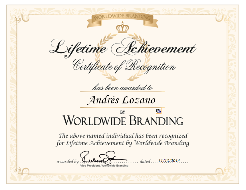 - Inductee, Lifetime Membership, Worldwide Branding (2014)
