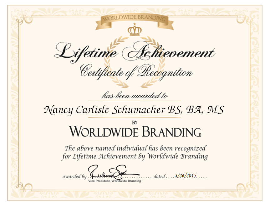 - Featured Member, Calendar Series, Cambridge Who’s Who (2012, 2011)